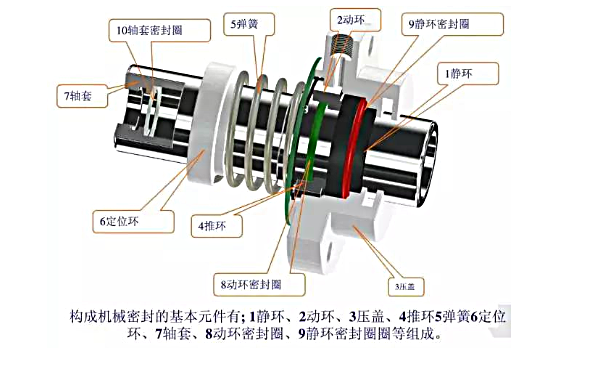 機械密封亦稱端面密封,按國家有關標準定義為:由至少一對垂直于旋轉軸線的端面在流體壓力和補償機構的彈力(或磁力)作用以及輔助密封的配合下保持貼合并相對滑動,而構成的防止流體泄漏的裝置。